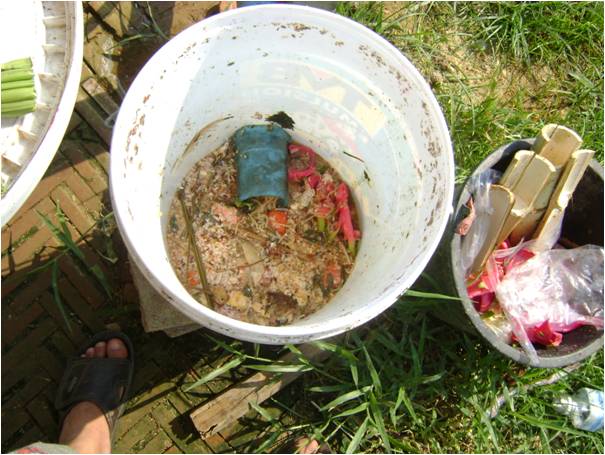 อันนี้เป็นบ่อหมักที่ได้จากการทิ้งเศษอาหาที่เรากินเหลือทิ้งในอาหารแต่ละมื้อครับ ก็สามารถนำมาต่อท่อลงบ่อหมักและนำมาเป็นก๊าซชีวภาพได้เช่นกันครับ ลองดูภาพประกอบด้านล่างนี้ครับ