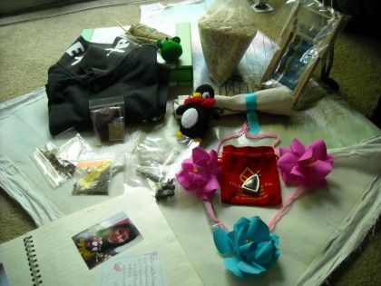 ..รูปเขียนจากกิ่งพม่าคอนศรี.. ถุงน่ารักๆจากนนท์ ..เพนกวิ้นตัวน้อยๆจากก้อย.. ตุ๊กตาสีเขียวจากหมู๋น้อย ..ข้าวสารจากอ้ายเวทย์ และแดง... พระผ้ายันต์จากป้าต่าย
