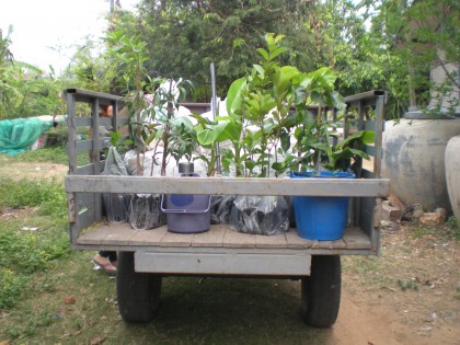วันนี้ที่โคราชอากาศดีครับ เลยถือโอกาสย้ายปุ๋ยจากเล้าหมูหลุมกับต้นไม้ไปลูกที่สระครับ