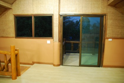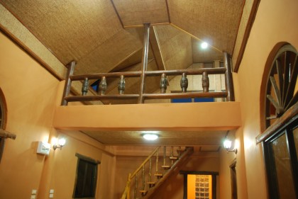 ด้านบนชั้นลอย ฝ้าบุด้วยเสื่อหวาย พื้นเป็นกระเบื้องลายไม้