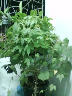 (ฟักข้าวสองต้นนี้ปลูกในกระถางและเลื้อยขึ้นบนต้นองุ่นนะคะ เหตุเพราะที่หอไม่มีตู้เย็นค่ะ อยากมีผักไว้กินบ้าง ถึงแม้ว่ามันจะไม่ให้ดอกไม่ให้ผล แต่ก็มียอดให้ได้เด็ดกินกับมาม่าบ้าง ค่ะ)