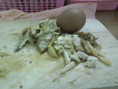 แหล่งโปรตีนยังไม่หมดค่ะ มีไข่ไก่เหลือ 1 ใบและไก่ต้มน้ำปลาจากอาหารมื้อเที่ยงค่ะ
