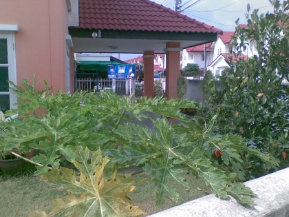 รอบบ้านต้นไม้เยอะ ร่มรื่นดีน่าอยู่มากค่ะ ปลูกของกินตั้งหลายอย่าง บ่งบอกได้ถึงความเอาใจไส่ และความเป็นคนที่รักต้นไม้มากๆ น้อยคนนะค่ะที่จะปลูกของกินรอบบ้านแบบนี้ ยิ่งอยู่บ้านรั้วติดกันแบบนี้ ส่วนใหญ่เห็นขนแต่ดอกไม้มาปลูกกัน