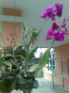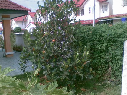 เอ...ต้นน้อยหน่านี้ ถ้าจำไม่ผิดอายุเขาน่าจะ4-5ปีได้ค่ะ เพิ่งได้กินลูกมาราวๆ2ปีนี่ค่ะ ที่ต้นเขาไม่ใหญ่ก็เพราะว่า แหม่มคอยตัดแต่งกิ่งเขาตลอดเพื่อไม่ให้โตมาก(หน้าบ้านเนื้อที่จะแคบค่ะ ไม่ต้องการให้เขาสูงใหญ่มาก ต้องคอยตัดแต่งกิ่งเพื่อบังคับเขาไว้ตลอดค่ะ ส่วนต้นส้มเป็นส้มพันธุ์เล็กที่ไม่มีเมล็ดหรอกค่ะที่เดี๋ยวนี้นิยมทานกันนะค่ะ เป็นไม้ตอนกิ่ง ซื้อมาจากสวนแถวบ้านค่ะแหม่มว่าเขาโตช้ามากๆเลยเป็นพุ่มสูงไม่เกินศรีษะเราแทบจะไม่ได้ตัดแต่งเลยค่ะ เพิ่งจะออกลูกเอาปีนี้ละค่ะ ส่วนลำใยปิงปองนั้นก็เป็นไม้ตอนกิ่งเช่นกันอายุพอๆกันกับส้มเคยออกลูกให้ทานแล้วลุกเท่าลูกปิงปองเลยเม็ดเล็กเนื้อแฉะ มีกลื่นหอมแรงมากจนใครๆบอกว่าเหม็นเขียวไปเลยแต่แหม่มชอบทานนะค่ะ แต่อีกหลายๆคนไม่ชอบทานสู้พันธุ์กระโหลกไม่ได้ ที่ปลูกเพราะว่าไม่ค่อยมีคนนิยมปลูกเหมือนเป็นของแปลกละ่ค่ะ แต่ลูกใหญ่จริงๆหาดูยากค่ะ ครั้นจะตัดทิ้งก็เสียดายเวลาที่ปลูกเขามา ที่บ้านนี้ก็ยังมีทับทิมอีก2ต้นค่ะได้กินลูกเหมือนกันแต่หนอนบุ้งชอบขึ้นเหลือเกิน ก็ยังมีต้นขนุน ต้นมะม่วงน้ำดอกไม้อายุ4-5ปีรุ่นราวคราวเดียวกันหมด แต่คอยตัดแ่ต่งบังคับกิ่งเขาไม่ให้สูง เพราะว่าที่นี่ลมแรงมากมะม่วงเป็นไม้ตอนกิ่งรากแก้วไม่มีเหมือนพวกเพาะเมล็ดถ้าปล่อยให้เขาสูงใหญ่มากจะต้านลมไม่อยู่กลัวล้มใส่บ้านค่ะ ส่่วนต้นขนุนที่เห็นหลังบ้านน้องใหม่เพิ่งจะ2ขวบค่ะ ขอบคุณน่ะค่ะสำหรับคำชม