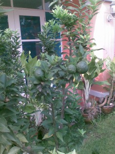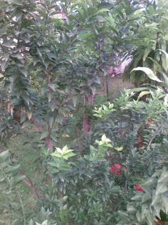 ต้นส้มทางขวามือของภาพค่ะกำลังมีลูกเลยค่ะ แล้วก็มีต้นน้อนหน่าเนื้อค่ะก็กำลังมีลูกเหมือนกันค่ะ