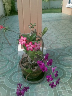 หน้าบ้านแล้ว...รกเลยค่ะ ฝนตกบ่อยมาก ตัดแต่งไม่ทันเลยค่ะ (ก็ทำคนเดียวนี่ค่ะ พวกเขาไปอยู่ที่กรุงเทพกันหมด)