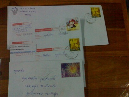 เมื่อวานกลับจากที่ทำงานถึงบ้าน ก็มีพี่ห้องติดกันนำจดหมายมาให้ โอ้... จดหมายตั้ง 4 ฉบับมาถึงพร้อมกันโดยไม่ได้นัดหมาย ก็ไม่คิดว่าจดหมายมันจะมาถึงพร้อมกันในวันนี้ ดีใจเหลือเกินที่ได้รับจดหมาย หลังจากที่ได้สมัครเป็นสมาชิกบ้านสวนฯ เมื่อประมาณปลายเดือนมีนาคมที่ผ่านมานี่เอง ก็ได้เข้าไปแสดงความคิดเห็น และแลกเปลี่ยนความรู้ ได้ถามเพื่อนสมาชิกในเรื่องที่ต้องการรู้ และได้รู้อย่างกระจ่างกับสมาชิกที่ได้ปฏิบัติอยู่แล้ว
