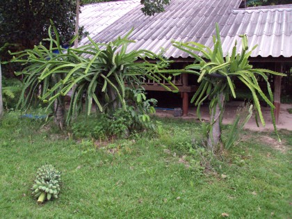 เช้านี้ แดงกับอ้ายเวทย์ไปสวนเหมือนทุกวัน ฝนไม่ตกมาเกือบอาิทิตย์แล้ว แต่หญ้าก็ยังเขียวอยู่ ดินก็ยังไม่แห้งมากนัก วันนี้เลยเป็นอีกวันที่ไม่ต้องรดน้ำต้นไม้ ฝนตกอาทิตย์ละครั้งก็น่าจะดีนะ ต้นไม้ กล้วยได้ฝน ใบเขียวขึ้นมาก