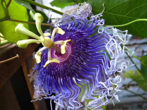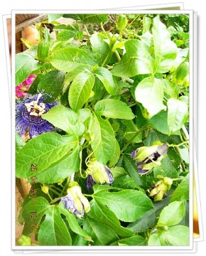 Passion flower สีม่วงแบบขนตาตรงๆ จะเรียกว่า เสาวรส หรือสร้อยฟ้าแต่สีม่วงนี้เป็นสร้อยฟ้าบลูฮาวาย ขนตาหยิกยาวสลวย ลักษณะใบจะมีขอบหยัก กลิ่นหอมอ่อนๆเป็นไม้เลื้อยอายุหลายปีดอกโตเมื่อมีแสงรำไร แต่สามารถปลูกกลางแจ้งแดดจัดได้อายุการบานของดอกจะสั้นกว่าอยู่ที่แสงรำไรเสาวรสเป็นคำเรียกรวมๆ ซึ่งมีหลายสีมากค่ะ ชมพู ขาว เหลือง พืช ม่วงอ่อน แต่เสาวรสอย่างบ้านๆของเรา เรียกกันว่า กระทกรก เพราะผลเสาวรสมีรกหุ้ม เมื่อวานคุณพ่อและคุณแม่ซื้อมาฝากท่านทั้งสองได้มีโอกาสไปวังน้ำเขียวเพื่อส่งหลานสาวเข้าเรียนมหาวิทยาลัย อยากได้พันธุ์เบญจมาศมาขยายพันธุ์ปลูกขายแต่ท่านว่าไม่มีเจ้าของสวนไม่ได้ชำไว้ เลยขอพวงครามและพวงหยกอย่างละต้นก็พอ(มักน้อย อิอิ) พอมาถึงบ้านท่านได้ต้นไม้มาเยอะแยะท่านภูมิใจเสนอที่สุดคือดอกสร้อยฟ้าบูลฮาวาย(ที่จริงท่านจำชื่อไม่ได้มาหาชื่อจากกลูเกิ้ล เgidๆก็ถามท่านว่าซื้อกระทกรกหรือเสาวรสสีม่วงมาปลูกหรอคะเพราะไหนท่านว่ามันรกแล้วตัดออกหมดเลย ท่านบอกว่าคนละอย่างกัน)นอกจากนี้ท่านยังมีต้นมะม่วงมาฝาก 2 ต้น เยอรบีรา 2 ต้น และเจ้าของสวนแถมพริกม่วง 1 ต้นกะจะเก็บเม็ดเพาะชยายพันธุ์ต่อ เมื่อก่อนนั้นท่านไม่ชอบดอกไม้เลยและไม่ปลูกเพราะกินไม่ได้แต่ต่อๆมาสงสัยความชอบของสวีทพีซึมเข้าไปถึงท่านกระมัง อิอิ และตอนนี้กำลังชักชวน ผู้อำนวยการเข้าเวบบ้านสวนฯเพราะเจอท่านตอนเที่ยงเปรยๆจะไปขโมยต้นไม้ของเราซะงั้น(รู้ว่าท่านสัพยอกแต่ก็ใจหาอะนะ 555)