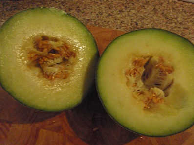 เนื้อฉ่ำได้ที่ หอม แต่ไม่หวานประทับใจเลยครับ หวานอ่อนๆ ทานไม่อร่อยเลย เมลล่อนญี่ปุ่นนั้น ที่เคยทานมาจะ หวานมากๆ ของที่บ้าน หวานไม่ถึงหนึ่งส่วนสี่ของร็อกเมลล่อนเลยครับ เป็นอันว่าผมต้องผิดหวังแต่ก็ทานจนหมดครับ ยังไงก็ไม่ท้อ ปีนี้ลองปลูกใหม่ครับเมล็ดยังมีอยู่สบายเลย