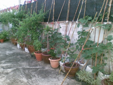 ที่เห็นเลื้อยขึ้นค้างก็คือแตงกวานะค่ะ