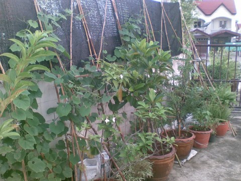 เมื่อวานนี้แหม่มปีนข้ามรั้วไปรดปุ๋ยจุลินทรีย์ที่บ้านเดี่ยว มีผู้หญิงอยู่ในหมู่บ้านมายืนเรียกแหม่ม เพื่อขอเก็บยอดกระถินกิน แหม่มก็เลยชวนเธอเข้ามาในบ้านแหม่มเพื่อโชว์สวนครัวเรา พี่แซมเธอตื่นเต้นใหญ่เลยว่าแหม่มปลูกผักในกระสอบได้อย่างไร แหม่มก็เลยตัดผักบุ้งจีนให้กำใหญ่ และแถมถั่วงอกที่แหม่มเพาะเองอีกครึ่งกิโล+ยอดกถินอีกหนึ่งกำใหญ่ เขาไม่ได้ขอแต่แหม่มให้เองมันเป็นความสุขที่เราได้แบ่งปัน รู้ไหมค่ะเธอพูดว่าไง? หนูไม่รู้ว่าพี่ปลูกผักเป็น วันๆเห็นพี่แต่งตัวสวยอยู่แต่ในห้องแอร์ เฮ้อ...ไม่รู้ว่าเขาชมหรือว่านิ? :confused: