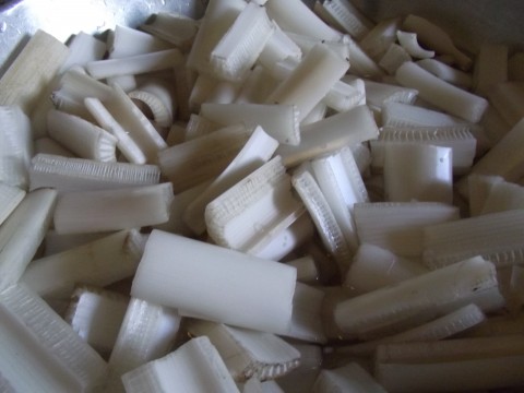 อันแกงหยวกนี้ท่านว่า นิยมแกงหยวกกล้วยเถื่อน กล้วยพังลา และที่เห็นนี้หยวกกล้วยฝาด ที่ลูกมันต้องให้สุกงอมจึงน่ากินหอมหวาน และอร่อยกว่ากล้วยพังลา (ป้าเล็ก มีมั้ยในสวน) เพราะนุ่มลิ้นกว่า หั่นชิ้นโตๆเวลาแกงเสร็จยุบเหลือนิดเดียวจ้า
