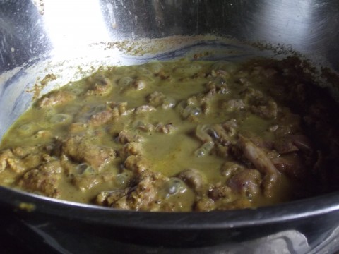 แกงกะทิแบบใต้ๆแท้นิยมผัดเครื่องแกงกับหางกะทิให้หอมฉุยเสียก่อน เพราะหยวกรสจืดและอุ้มน้ำ แกงหยวกจึงต้องบวกเคย(กะปิ) คือเพิ่มกะปิให้มากขึ้นหนึ่งเท่าของแกงทั่วไป วันนี้ทีมงานหลายคน หยวก ๑ ต้น หมูเนื้อแดง ๑ กก. มะพร้าวลูกใหญ่เนื้อหนา ๒ ลูก ใช้น้ำคั้นกะทิ ๒ ขันเล็กพอ แยกหัว แยกหางกะทิไว้