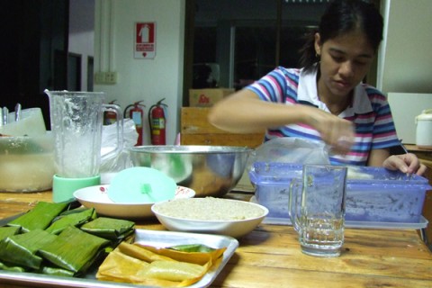 ขนมกล้วยผสมเสร็จ รอห่อ