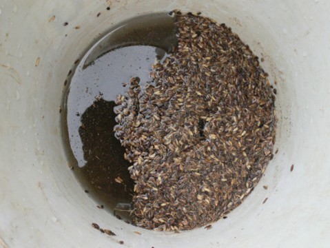2.เมื่อใส่น้ำลงไป..เมล็ดข้าวที่ลีบก็จะลอยขึ้นมา...เอาทิ้งนะครับ....
