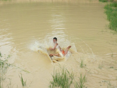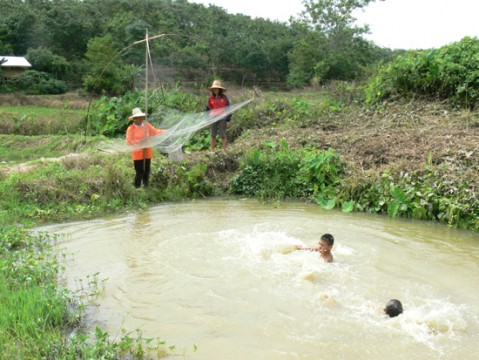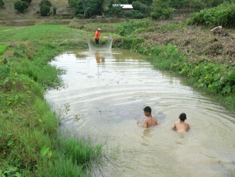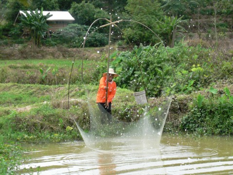 ไม่นานก็โดนเรียกให้ไปไล่ปลา..อีกบ่อ..ไปเข้าสะดุ้ง (ยอ..ขนาดเล็ก)..เล่นน้ำอีกบ่อ...ที่นี้
