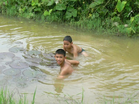 ในบึุงมีปลาด้วย เด็ก ๆ เล่นอยู่อย่างนั้นจะจับปลาได้หรือคะ :confused: :confused: :sweating: :sweating:
