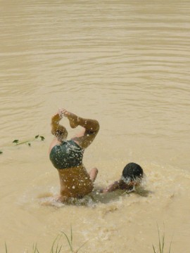 เนื่องกันจนเป็นเรื่องราวที่น่าสนใจของการกระโดดลงน้ำของเด็ก ๆ 2 คนนี้..(ที่จริงมีภาพ