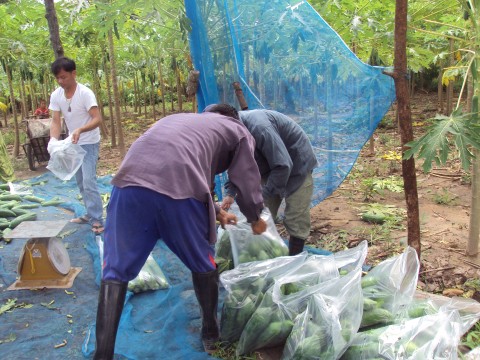 วันนี้มีพ่อค้าคนกลางมารับซื้อ 3 เจ้า เก็บมะละกอได้ทั้งหมด 5 ตัน เก็บช่วยกันทั้งหมด 10 คน แรงงานไม่ได้จ้าง มาช่วยกันเก็บฟรี ๆ ซึ่งเป็นภาพที่ประทับใจมาก ทุกคนมาด้วยใจ นิกบอกวันนี้ถ้าเก็บหมดสวน คงได้ประมาณ 8 ตัน แต่ฝนทำท่าจะตก และกลัวรถพ่อค้าจะติดหล่ม วันนี้เลยพอแค่นี้ก่อน