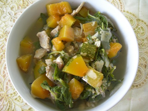 เมนูตอนเที่ยงแกงอ่อมฟักทองสปาเก็ตตี้พี่ดงดม อิอิ