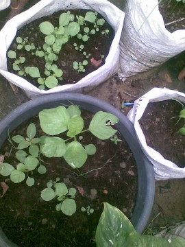 เอ...ในกะละมังดำนี้มีต้นอะไรแปลกปลอมมาด้วยมิรู้แฮะ..... อาจารย์ป้าเล็ก...ขา หน้าตาแบบนี้ที่ขึ้นมานี่ ใช่ผักโขมไหมค่ะ?