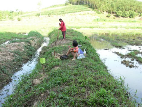 วันนี้ปัญหาดีกว่าเปลี่ยนสถานที่เลยแล้วกันย้ายมาที่คันนาใกล้ ๆ น้ำหอยทากไม่มี