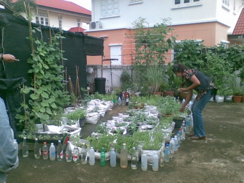ทีมงานเขาสัมภาษณ์ บันทึกเทปโทรทัศน์ ใช้เวลา1ชั่วโมงเต็มๆเลยค่ะ เขาสัมภาษณ์แหม่มว่า อะไรเป็นแรงจูงใจให้พี่แหม่มหันมาปลูกผักกินเอง แหม่มก็ตอบว่าคงเนื่องมาจากครอบครัวของพี่เป็นโรคชอบแพ้อาหาร ถ้าจะซื้อผักเขากินก็ต้องซื้อที่มันปลอดสารพิษค่ะแล้วก็ราคาแพงด้วย ยิ่งตอนนี้เศรษฐกิจไม่ดีด้วยเราก็ควรที่จะมาประหยัด และบ้านแหม่มก็ไกลตลาดด้วย ลูกสาวแหม่มก็เลยแนะนำให้ค้นหาในอินเตอร์เนทดูจุดเริ่มต้นเมื่อ3เดือนที่แล้วค่ะ ผลปรากฏว่ามาพบเวปบ้านสวนพอเพียงดอทคอมเข้า โดยมีผู้ใหญ่โสทรเป็นเจ้าของเวป แหม่มก็เลยสมัครเข้ามาเป็นสมาชิก ในเวปนี้มีเพื่อนที่ใจดีมากมายคอยช่วยเหลือและแนะนำวิธีการปลูก การผสมเกษร และการทำน้ำหมักชีวภาพนี่แหล่ะคือจุดสำคัญ โดยเฉพาะผู้ใหญ่โสทรเขาโชร์บล๊อกเกี่ยวกับการปลูกพืชผักในกระสอบว่าทำอย่างไร โฮ...เป็นอะไรที่แหม่มไม่อยากจะเชื่อเลยนะค่ะในตอนแรกคิดว่าเขา make มาก็เลยลองปลูกดูบ้างอย่างที่ทุกๆคนเห็นแหล่ะค่ะ ลองผิดลองถูกมาก็หลายครั้งจนสำเร็จนี่ค่ะ และถ้าใครไม่มีเมล็ดพันธุ์นะค่ะก็ขอมาที่เวปนี้ได้ทุกๆคนน่ารักและใจดีแจกให้ฟรีส่งทางไปรษณีย์ถึงบ้านเลยค่ะ ทีมงานก็ถามต่อว่าแล้วพี่แหม่มได้อะไรจากสังคมออนไลน์นี้บ้าง แหม่มก็ตอบว่าได้ความรักและความจริงใจไม่เหงาแล้วค่ะ สังคมออนไลน์ไม่ใช่ว่าจะเป็นอันตรายและไม่ดีเสมอไปนะค่ะ ถ้าเราใช้ให้ถูกทางเราก็จะพบมิตรที่ดีๆแบบนี้ได้.......ขอให้เพื่อนๆทุกคนมีความสุขในการชมนะค่ะ รักทุกๆคนในบ้านสวนพอเพียงนี้เลยค่ะ
