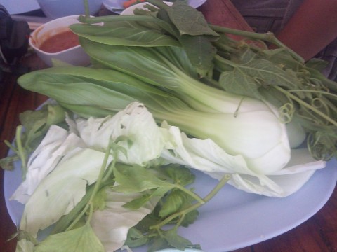ผักสดๆๆ ล้างสะอาดมาก ตอนเด็ดผักใส่กะทะ อีชั้น เจอ อี้ นกอยู่ในซอกผักด้วย แต่ไม่กล้าบอกใคร กลัว วงแตก อิอิอิ