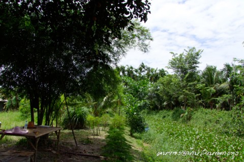 บริเวณนี้จะเป็นจุดที่เย็นที่สุดของสวน เพราะเป็นมุมคลองพอดี