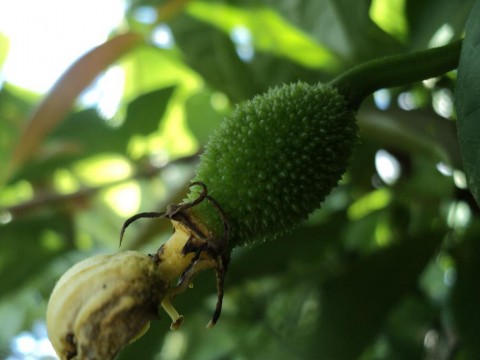 ได้ฟักข้าวจากบ้านเพื่อนมา เขาปลูกไว้ที่บ้านพัก แล้วย้ายบ้านไปอยู่บ้านตัวเอง ไปไม่เจอเจ้าของหรอก เก็บมาเลย แต่เขามาบอกที่บ้านก่อนแล้วค่ะ วันที่เขามาขุดหน่อกล้วย บอกว่าว่างๆให้ไปเก็บ เสร็จเรา เดี๋ยวไปอีก