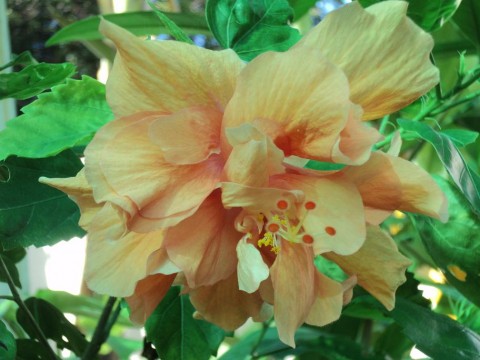 ชบาสีส้ม ออกดอกอีกแล้ว ตัดกิ่งแช่น้ำแล้ว