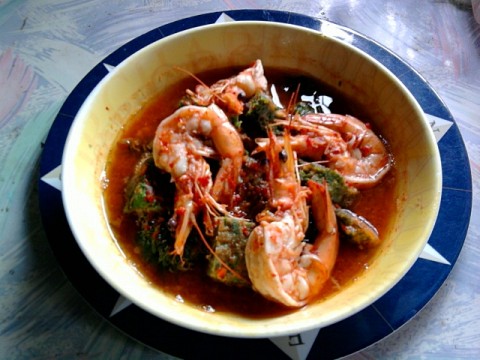 แกงส้มไข่ชะอมกับกุ้งตัวโต