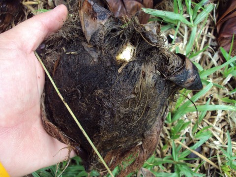 ไผ่เปราะ ชาวบ้านเอามาให้ฟรี ๆ สองหน่อ ไผ่ชนิดนี้ทำข้าวหลามหอม อร่อยมาก ขึ้นอยู่ตามหุบเขาสูง ซึ้งน้ำใจคนที่เอามาให้จริง ๆ