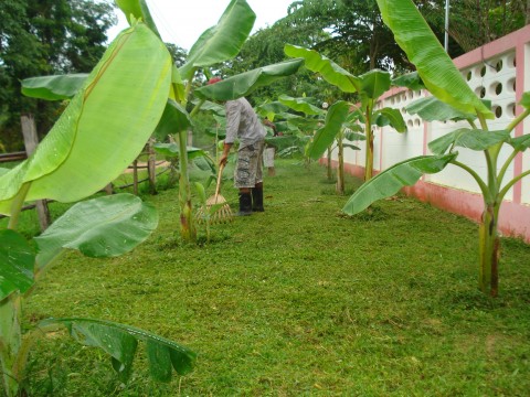 (กล้วยน้ำว้าไส้เหลืองป้าเล็กกำลังงามครับ) ช่วงนี้หญ้าจะโตเร็วมากครับ แบบนี้ต้องตัดครับ