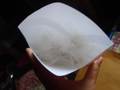 7. เมล็ดขจร จากคุณ Jan ค่ะ มาดูในซองค่ะ เป็นปุย ๆ แบบนี้ หยิบออกมาไม่ได้จะฟุ้งกระจายค่ะ