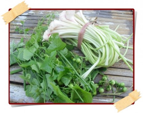 เห็นผักในตะกร้า น่ากินทั้งนั้นเลย แล้วหน่อขาว ๆ ที่เป็นมัด ๆ นั่นอะไรคะ
