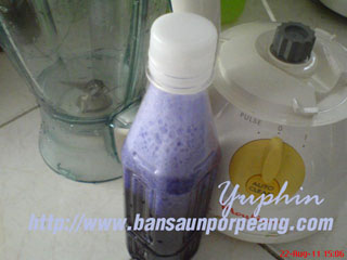 2.น้ำที่ได้นำไปปั่นรวมกับวุ้นว่านหางจระเข้ แล้วก็กรองด้วยผ้าขาวบางเสร็จแล้วริินใส่ขวดเก็บไว้ในตู้เย็นค่ะ เห็นป้าแมวว่าอย่างนั้น