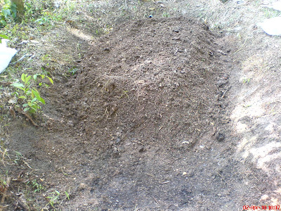 ตั้งใจอยากทำปุ๋ยหมักอยู่หลายวันแล้วแหละ แต่ไม่ได้ทำสักที เมื่อวานไปเตรียมดินจะปลูกถั่วพู ก็คิดแบบขี้เกียจว่าจะหมักปุ๋ยในหลุมที่จะปลูกถั่วพูเลยดีมั๊ย คิดไปคิดมาไม่เอาดีกว่าคงได้ผลไม่ดีเท่าที่ควร เช้าวันนี้หลังจากรดน้ำต้นไม้เสร็จก็เริ่มลงมือทำปุ๋ยหมัก ดูนาฬิกาแล้วประมาณ 8.00 น. สถานที่ทำปุ๋ยหมักผมนั่นก็คือ บ่อเลี้ยงปลาดุกสมัยปีมะโว้โน่นแหนะ เลิกเลี้ยงปลาดุกก็เอาไว้ทำปุ๋ยหมัก รอบนี้ก็เป็นรอบที่ 2 ที่ทำปุ๋ยหมักในบ่อเลี้ยงปลาดุก ก่อนหน้านี้ผมก็ขนขี้เลื่อยมาใส่เอาไว้ในบ่อปลาดุก ระยะเวลาที่ทิ้งเอาไว้ก็น่าจะเป็นปีแล้วแหละ
