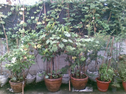 ภาพนี้กระเจี๊ยบแดง พริกขี้หนู ต้นคะน้า