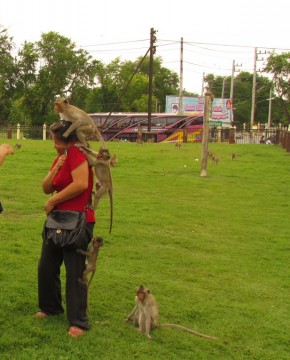 พากันขึ้นทั้งแม่ทั้งลูกเลย ระวังหน่อยนะคะ ลิงมันรุมจะถอดสร้อยป้าเหนือค่ะ พอดีป้าจับสร้อยไว้ ถ้าใครไปเที่ยวระวังหน่อยสร้อยแขนก็เหมือนกันค่ะ แต่ก็มีคนดูแลอยู่ค่ะ