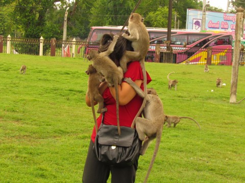 กลัวลิงกัดแล้วต้องไปฉีดยากันพิษสุนัขบ้าน่ะป้าเหนือ ขนาดเดินห่างๆ ลูกชายแฟนยังโดนแย่งน้ำหวานไปกินเลยค่ะ พวกนี้ไวมากๆ