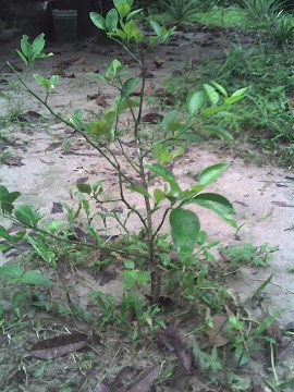 มะนาวก็มีครับ อันนี้ชำมาจากที่บ้านแม่ แล้วมาปลูกที่บ้านแฟน จำนวน 5 กิ่ง รอดมาสองต้นครับ