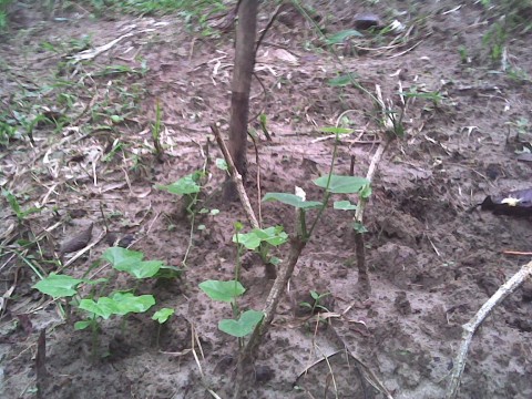 ตำลึงด้านซ้ายมือต้นเล็กปลูกจากเม็ด ส่วนทางขวามือปลูกจากเถาแก่ของมันครับ งานนี้ได้กินแกงเลียงตำลึงแน่นอน