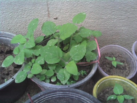 ในกระถางนี้เป็นมะอึกครับ เกิดจากการล้างมีดทีซอยมะอึกตอนทำน้ำพริกครับ งอกเยอะจริงๆ มะอึกนี้พิเศษตรงที่ไม่มีหนาม แล้วก็ลูกใหญ่ดี เก็บมาจากข้างที่ทำงานเช่นเคยครับ