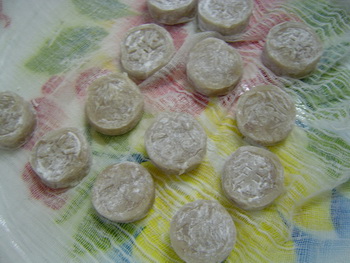 แล้วใช้พิมพ์ขนมโก๋กดออกมาเป็นทรงกลม