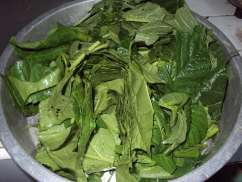 มะเขือกินใบกับผักขม 2 ยอด