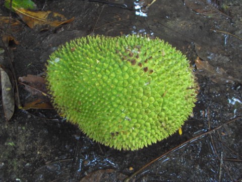 ลูกขนุนสำปะลอ มีขนาดไม่ใหญ่นัก แต่โตกว่า สาเก ลักษณะคล้ายขนุนมากกว่าสาเก