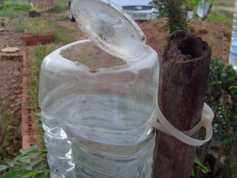 วิีธีการก็คือเจาะฝาขวดน้ำเพื่อที่จะใส่ก๊อก แล้วใช้ซิลิโคนที่ใช้ติดกระจกอุดรอบๆก๊อกเพื่อไม่ให้น้ำซึมออก
