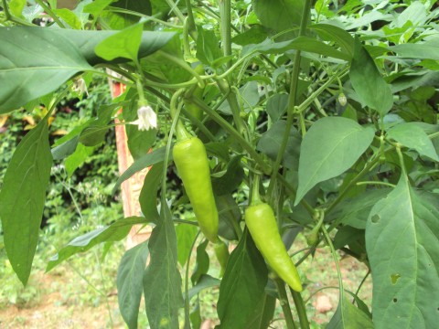 พริกหยวกปลูกไว้ในปล้องซีเมนต์ หน้าบ้าน